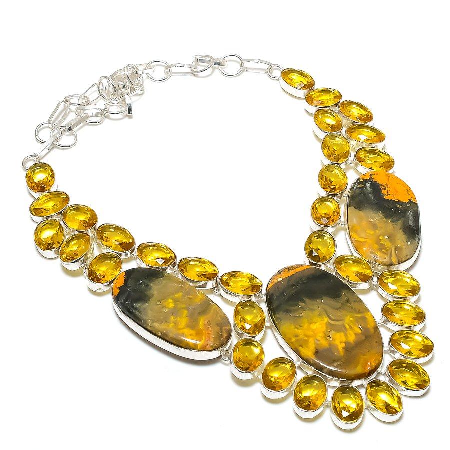 Ожерелье из стерлингового серебра 925 пробы с натуральной шмельной яшмой и цитрином, 18 дюймов I1I75