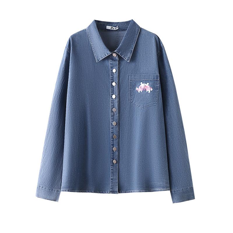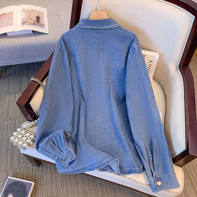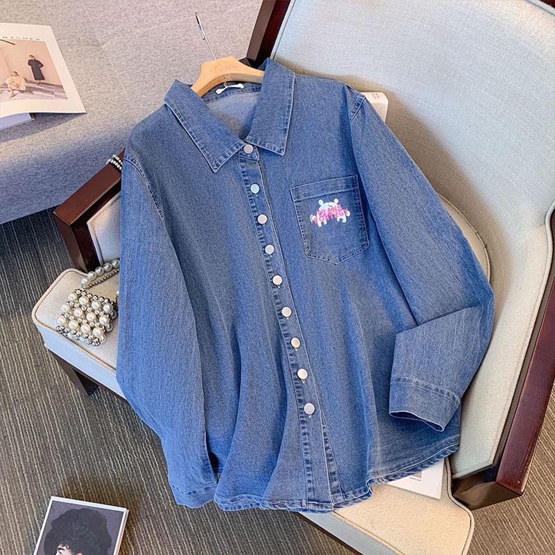 Женская эластичная джинсовая рубашка поло больших размеров, верхняя куртка, весна-лето, свободная джинсовая куртка с положительным плечом
