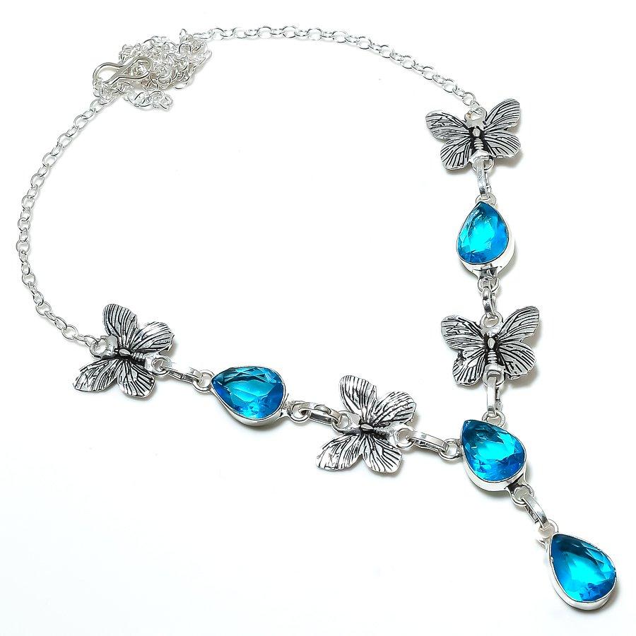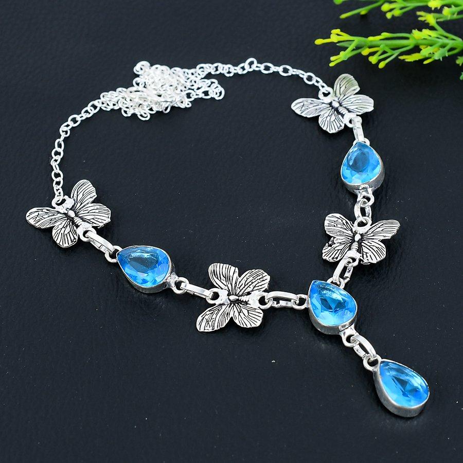 Ожерелье ручной работы из стерлингового серебра 925 пробы с натуральным синим топазом 18 дюймов E4w95