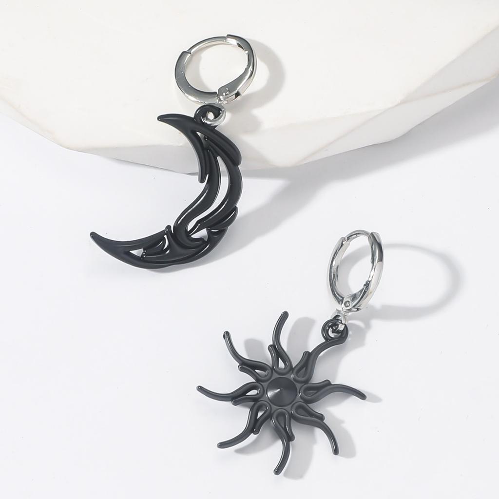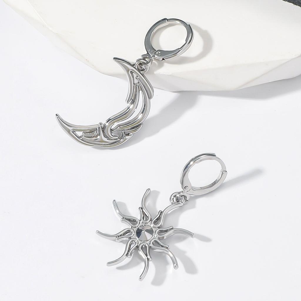 Минималистичные серьги Sun Moon с асимметричной индивидуальностью и серьги в абстрактном стиле Короткие полые серьги со звездой и луной