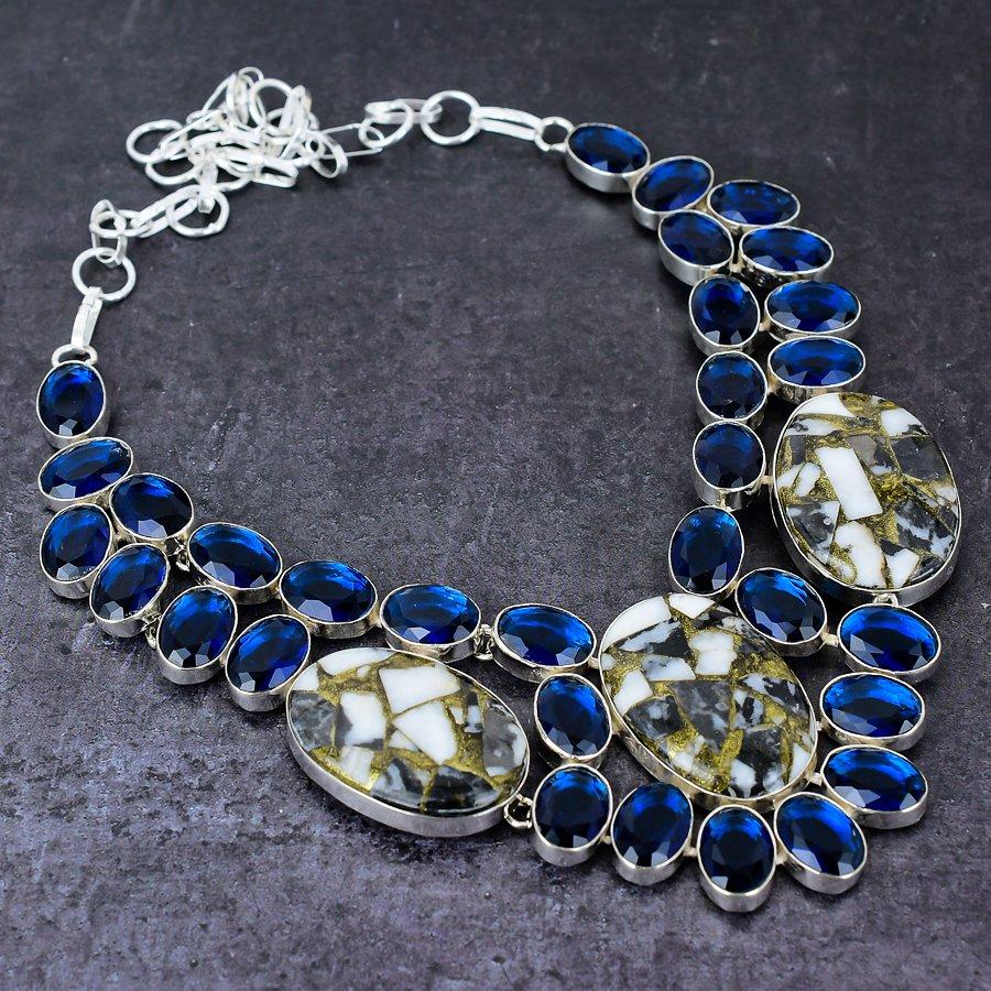 Ожерелье из натурального серебра 925 пробы с зебровой яшмой и голубым топазом, 18 дюймов l7K39
