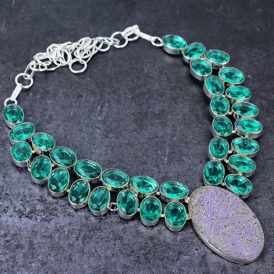Натуральный пурпурит, турмалин, стерлинговое серебро 925 пробы, подарочное ожерелье 18 дюймов c5U13