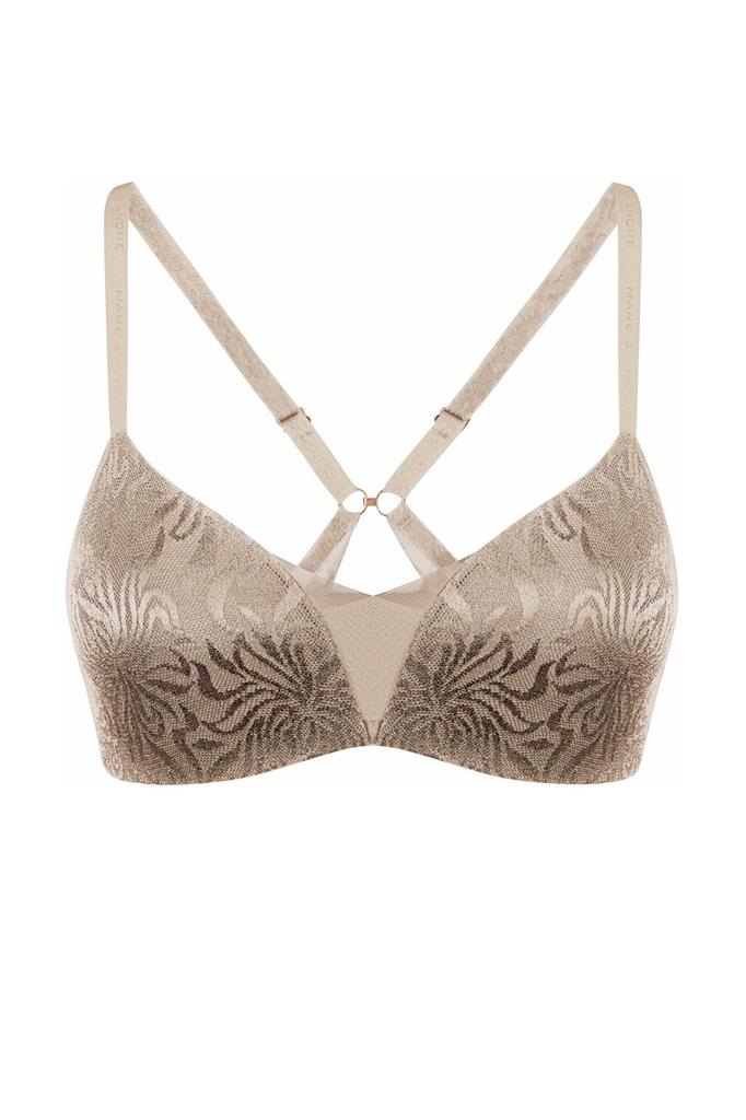 Серия CRYSTALLINE это прекрасное бесшовное белье, выполненное из блестящего кружева с цветочными мотивами. Коллекция CRYSTALLINE не только элегантна и прекрасна, но и обеспечивает отличную посадку и поддержку груди. Бескаркасный бюстгальтер с треугольной чашкой. Встроенный корректор пуш-ап создает дополнительный объем и приподнимает грудь. Бюстгальтер имеет дополнительный крючок на спинке для различных вариантов фиксации бретелей, позволяя настроить его под индивидуальные предпочтения. Декоративные вставки из сетки на передней части между чашками и на спинке придают бюсту элегантный и стильный вид. Он идеально подходит для повседневного использования и под любой тип одежды.