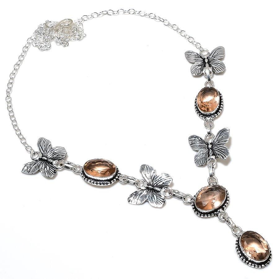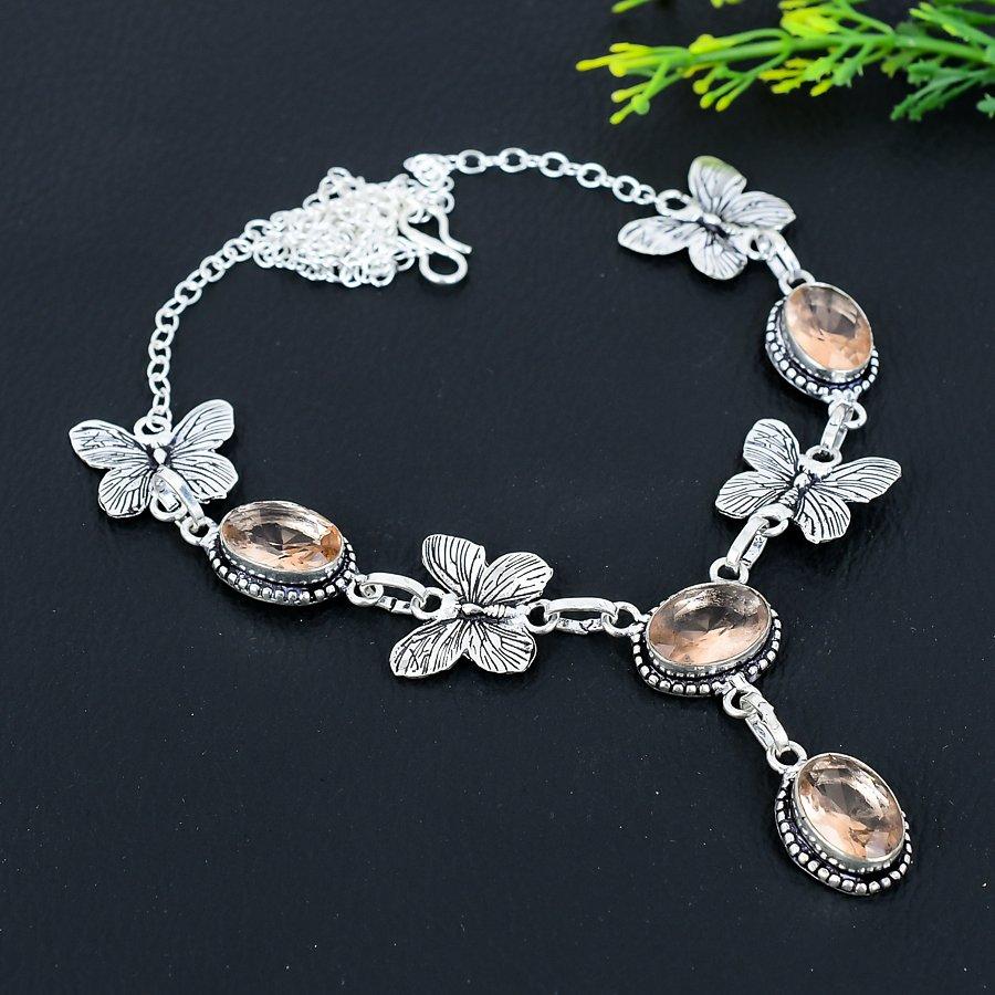 Ожерелье ручной работы из стерлингового серебра 925 пробы с натуральным морганитом 18 дюймов Q9b14