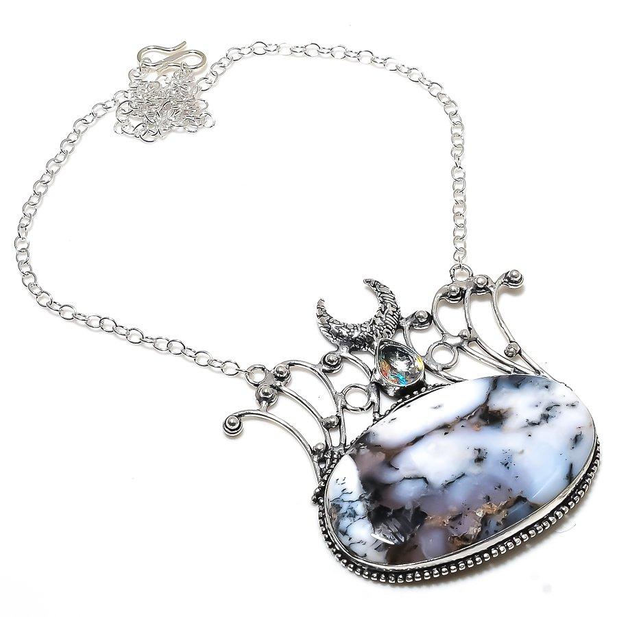 Ожерелье из натурального дендритового опала и мистического драгоценного камня из стерлингового серебра 925 пробы 18 дюймов i5p38