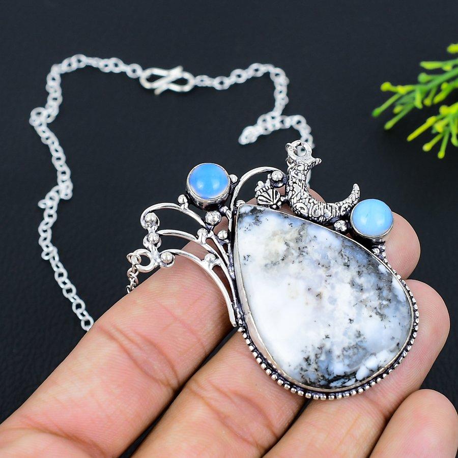 Натуральный дендритовый опал, опал, драгоценный камень, ожерелье из стерлингового серебра 925 пробы, 18 дюймов p0B64