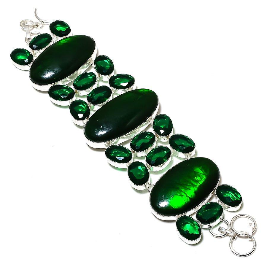 Натуральный зеленый лабрадорит, диопсид, браслет из стерлингового серебра 925 пробы, 7–8 дюймов, k4N61