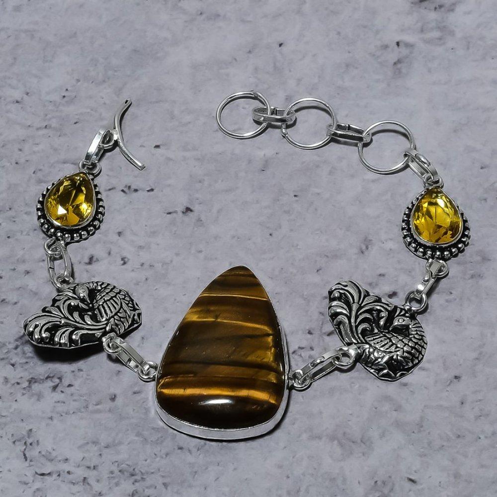 Браслет ручной работы из стерлингового серебра 925 пробы с натуральным тигровым глазом и цитрином 7–8 дюймов G2z30 — купить товар онлайн с бесплатной доставкой по всему миру!