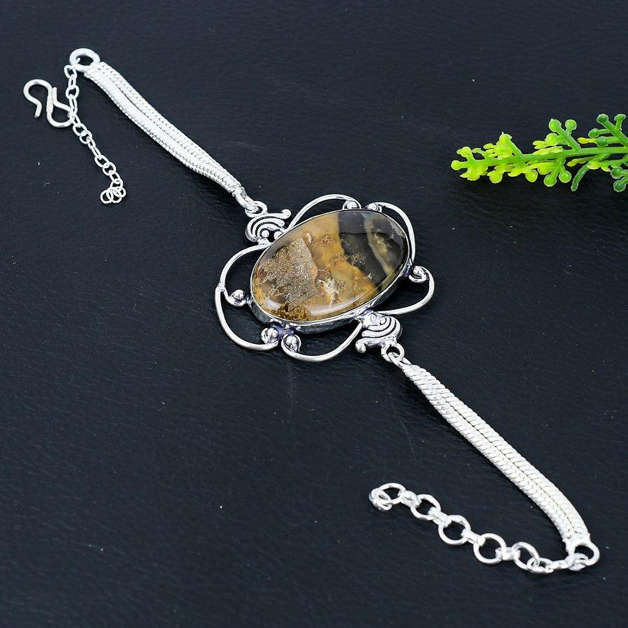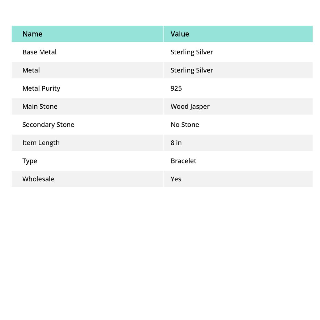 Браслет ручной работы из стерлингового серебра 925 пробы из натурального дерева, драгоценный камень яшма, 7–8 дюймов, Y0w99