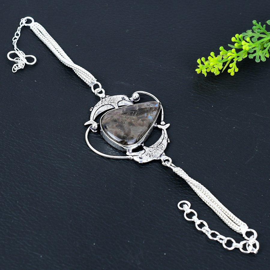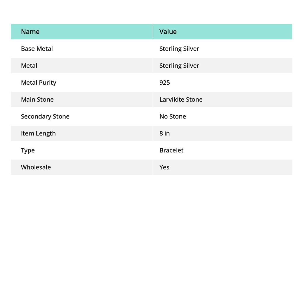 Браслет из стерлингового серебра 925 пробы с натуральным камнем Ларвикит, 7-8 дюймов, q0a72