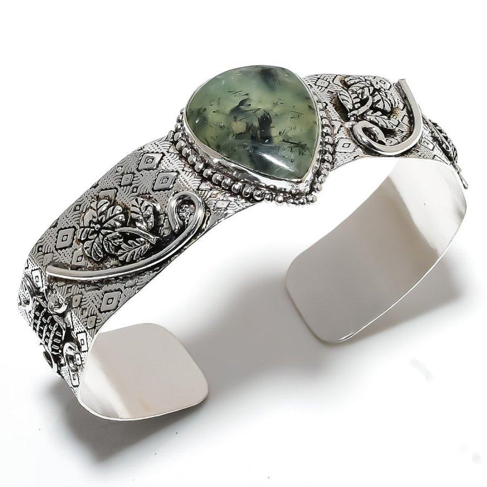 Натуральный драгоценный камень пренит, стерлинговое серебро 925 пробы, регулируемый браслет-манжета F4J37 — купить товар онлайн с бесплатной доставкой по всему миру!
