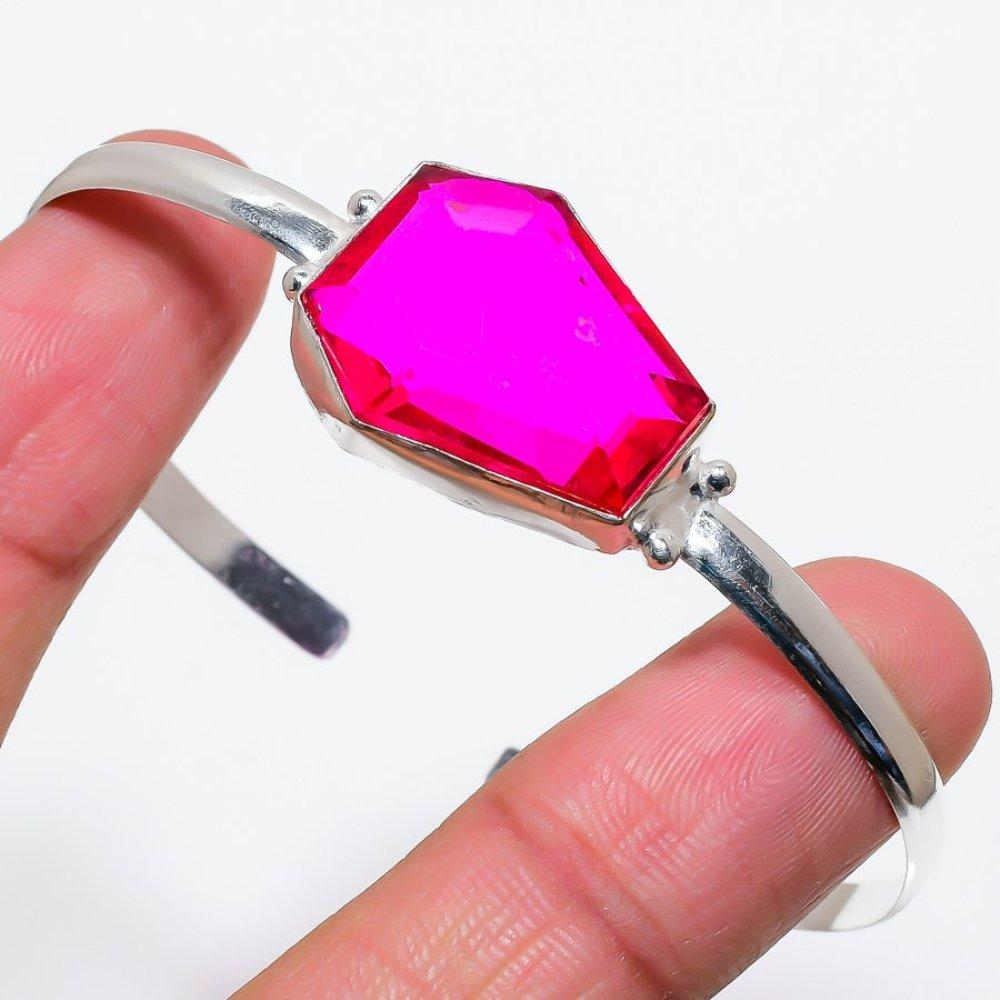 Натуральный розовый рубиллит, драгоценный камень, стерлинговое серебро 925 пробы, регулируемый браслет-манжета s0m82