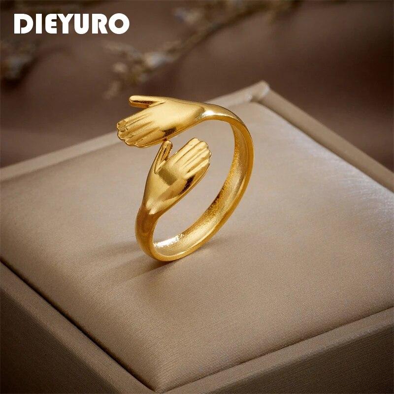 Нержавеющая сталь 316L, креативное кольцо для объятий, женский дизайн, открытое кольцо для девочек, вечерние ювелирные изделия, подарок