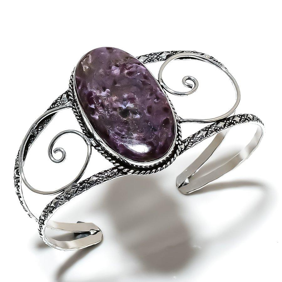 Натуральный русский драгоценный камень чароит из стерлингового серебра 925 пробы, браслет-манжета, регулируемый. о3к90