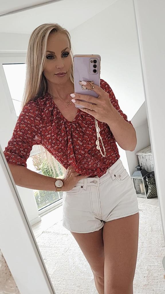 Миленькая лёгкая блуза Довольно универсальная модель в романтическом стиле. Можно сочетать как с летними вещами (шортами, джинсами, юбками и т.п.), так и с более классическими. Материал похож на шифон. Качество хорошее. Размерный ряд М-4XL Размеры маломерят, на мне размер 3ХL, он скорее соответствует размеру L, может подойдёт на XL, но параметры в размерной таблице указаны верные. Даже объем блузки чуть больше! Замеры изделия: ОГ около 110 см, плечи 40, длина 60 см. На меня села свободно, по плечам хорошо. Можно было бы и на размер меньше, но так тоже можно. Мои параметры ОГ 92, плечи 40, ОБ 98, рост 172 см.