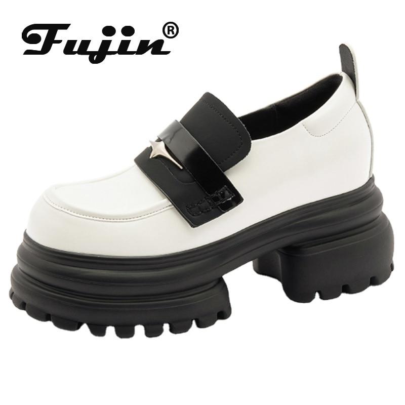 Fujin Женские кроссовки на танкетке из лакированной кожи из искусственной кожи 8 см, весенне-осенние женские туфли-лодочки на массивном каблуке, плюшевые ботинки, туфли Мэри Джейн