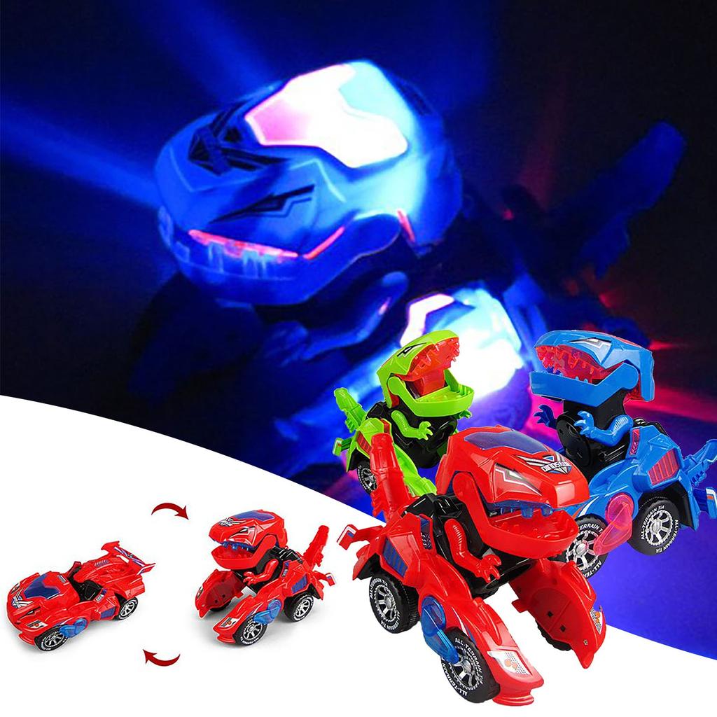 Светодиодный автомобиль-трансформер динозавра, игрушечный автомобиль-динозавр, автоматический игрушечный автомобиль-трансформер динозавра для детей 3+ лет