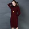 Женское трикотажное платье осень-зима винтажное женское тонкое платье-свитер трикотажные платья с длинным рукавом