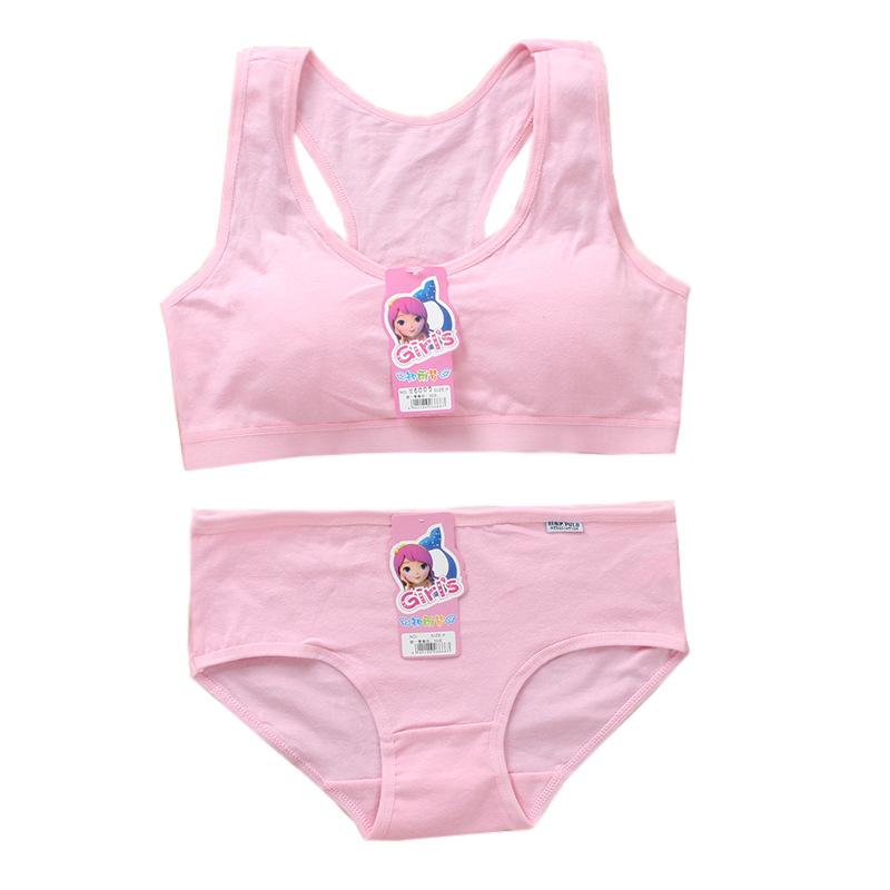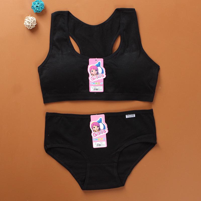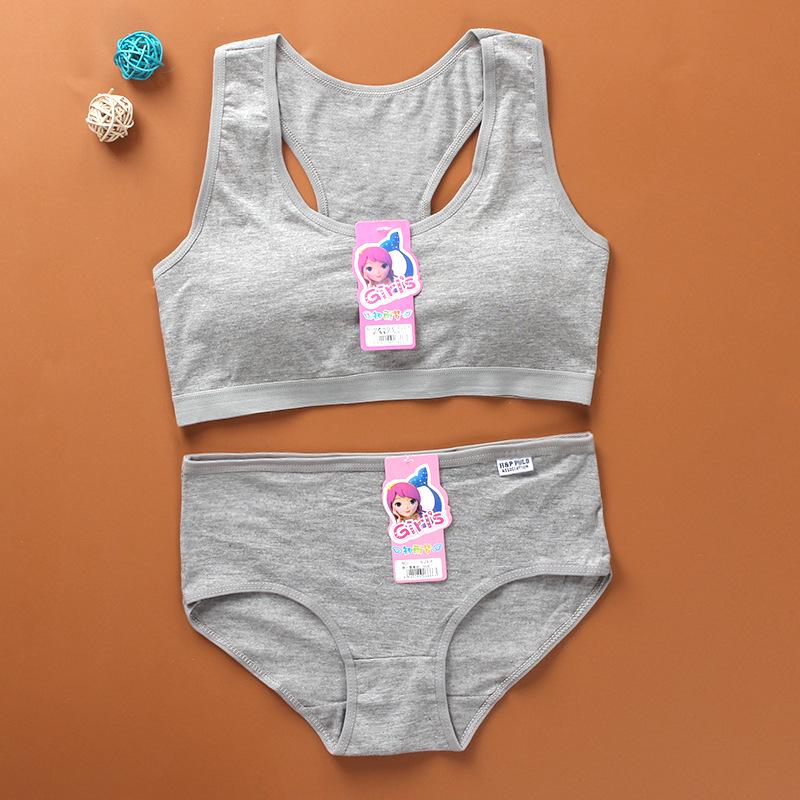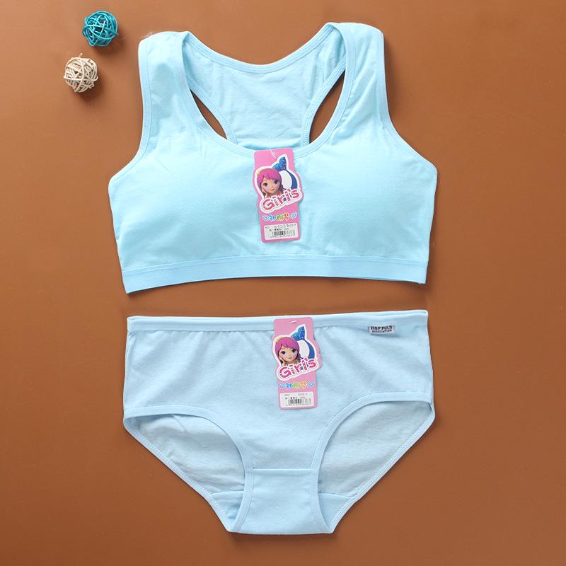 Хлопковое нижнее белье, спортивный бюстгальтер с беспроводным принтом для девочек, хлопок + трусики, комплект из 2 спортивных бюстгальтеров для девочек-подростков, От 8 до 14 лет