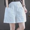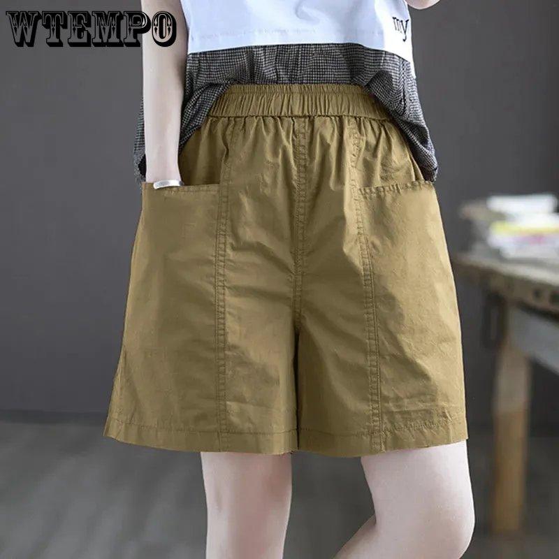 WTEMPO Хлопковые шорты, женские свободные однотонные короткие широкие брюки, летние тонкие повседневные шорты с высокой эластичной резинкой на талии