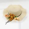 WTEMPO Летняя соломенная шляпа со свежими цветами и волнистыми краями, женская соломенная шляпа с большим карнизом, солнцезащитный козырек, уличная дорожная шляпа от солнца
