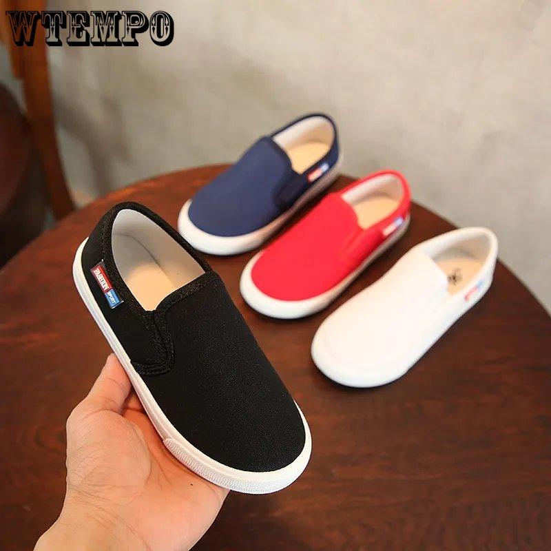 WTEMPO Детская обувь для всех сезонов, для мальчиков и девочек, нескользящая обувь на мягкой подошве на плоской подошве, однотонная детская повседневная легкая обувь