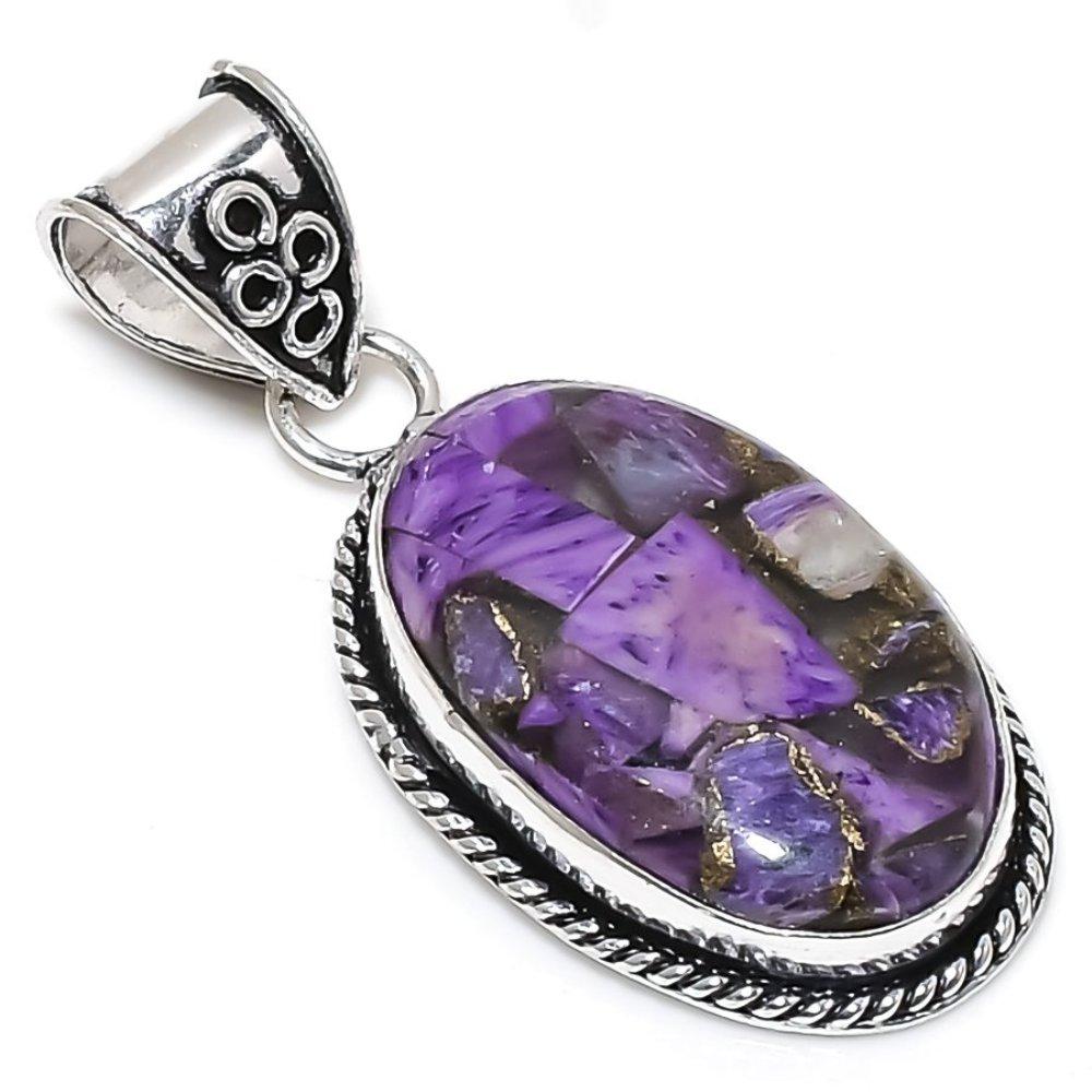 Подарочный кулон из стерлингового серебра 925 пробы с натуральным медным чароитом 1,97 дюйма I6D96