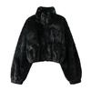 Женские повседневные свободные зимние укороченные топы с воротником-стойкой и длинными рукавами на молнии, черно-белое пальто, женские теплые флисовые короткие куртки