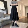 WTEMPO Черная длинная плиссированная юбка в стиле Лолиты в готическом стиле, женские винтажные юбки-миди с высокой талией и оборками в стиле Харадзюку, летняя корейская уличная одежда