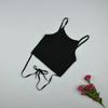 WTEMPO Летние укороченные топы, женские однотонные повседневные бандажные футболки без рукавов, модные черно-белые топы на бретелях на шнуровке