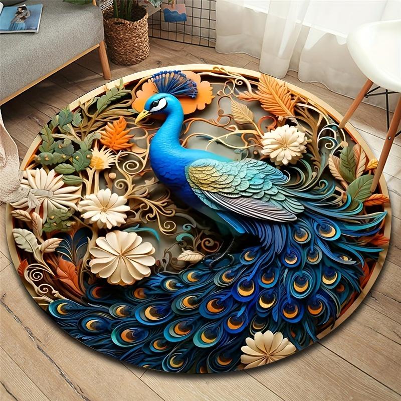 1 шт. нескользящий ковер Павлин ковер для спальни мультфильм круглый ковер гостиная цветочный напольный ковер игровой коврик — купить товар онлайн с бесплатной доставкой по всему миру!