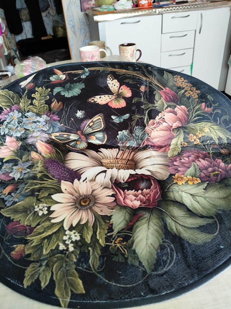 1 шт., круглый ковер с темно-бабочкой и цветочным узором, домашний нескользящий моющийся волокнистый ковер, мягкий удобный коврик для спальни, гостиной — купить товар онлайн с бесплатной доставкой по всему миру!