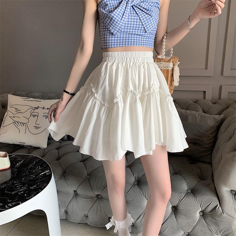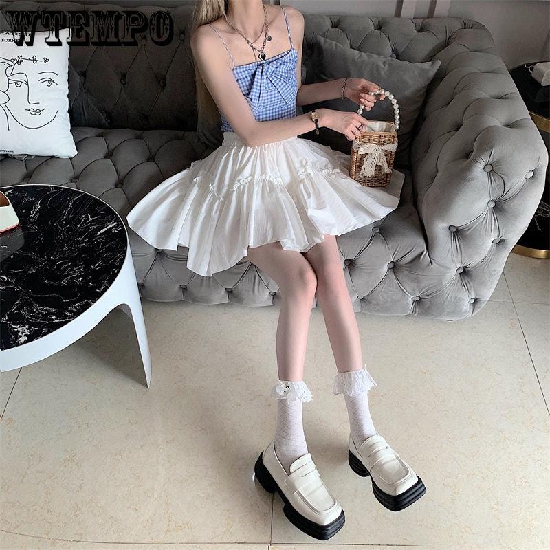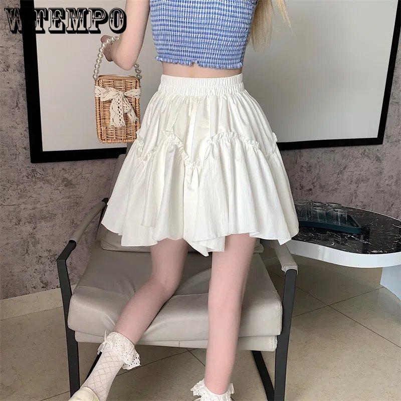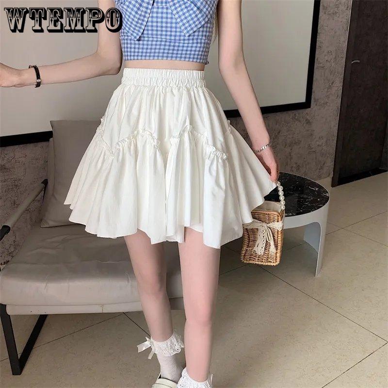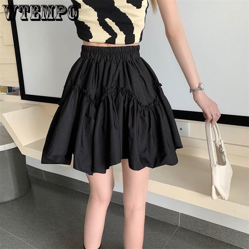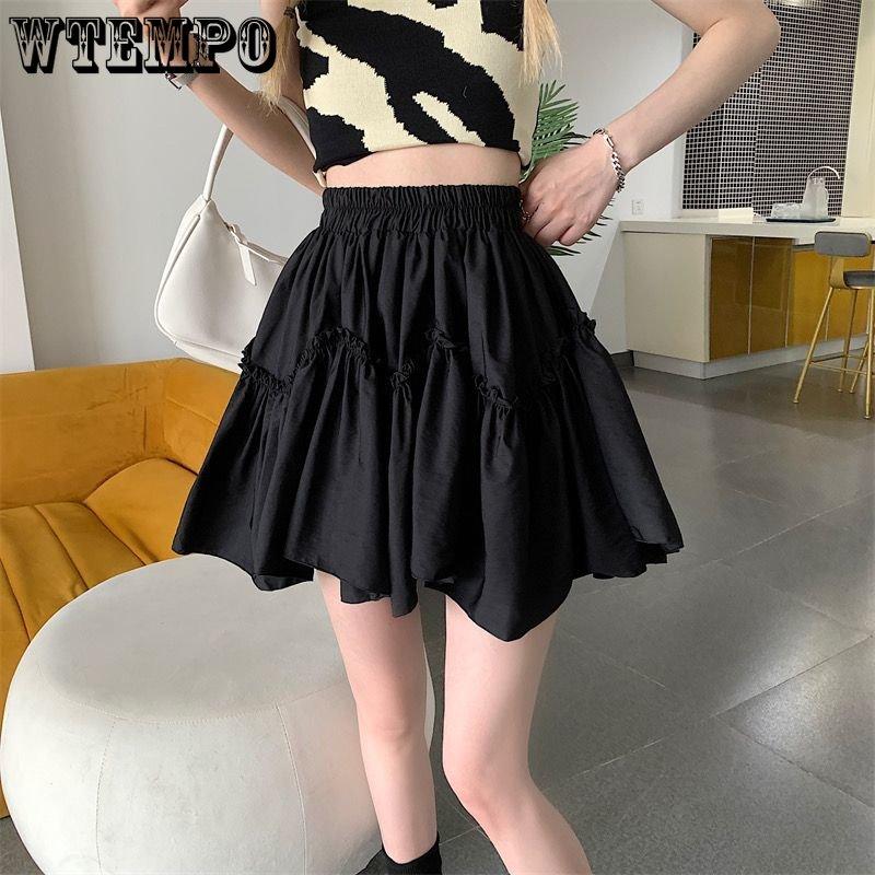 WTEMPO Четыре сезона универсальные однотонные короткие юбки-торты женские эластичные с высокой талией тонкие черные, белые юбки-пачки трапециевидной формы во французском стиле во французском стиле