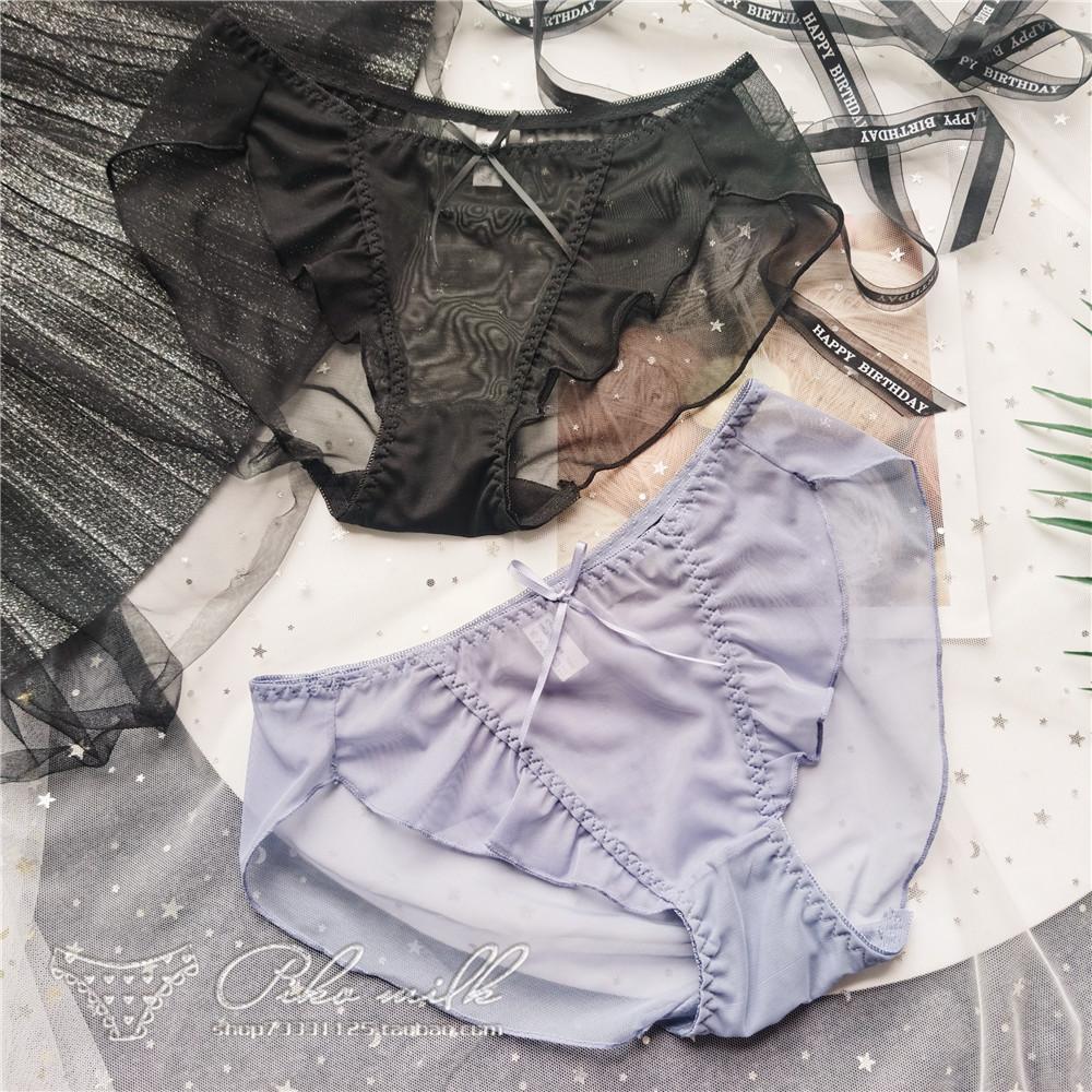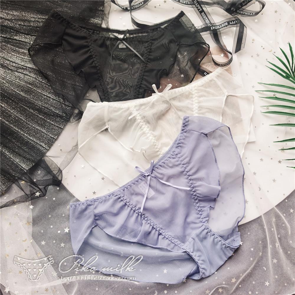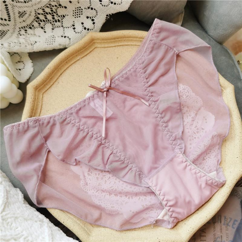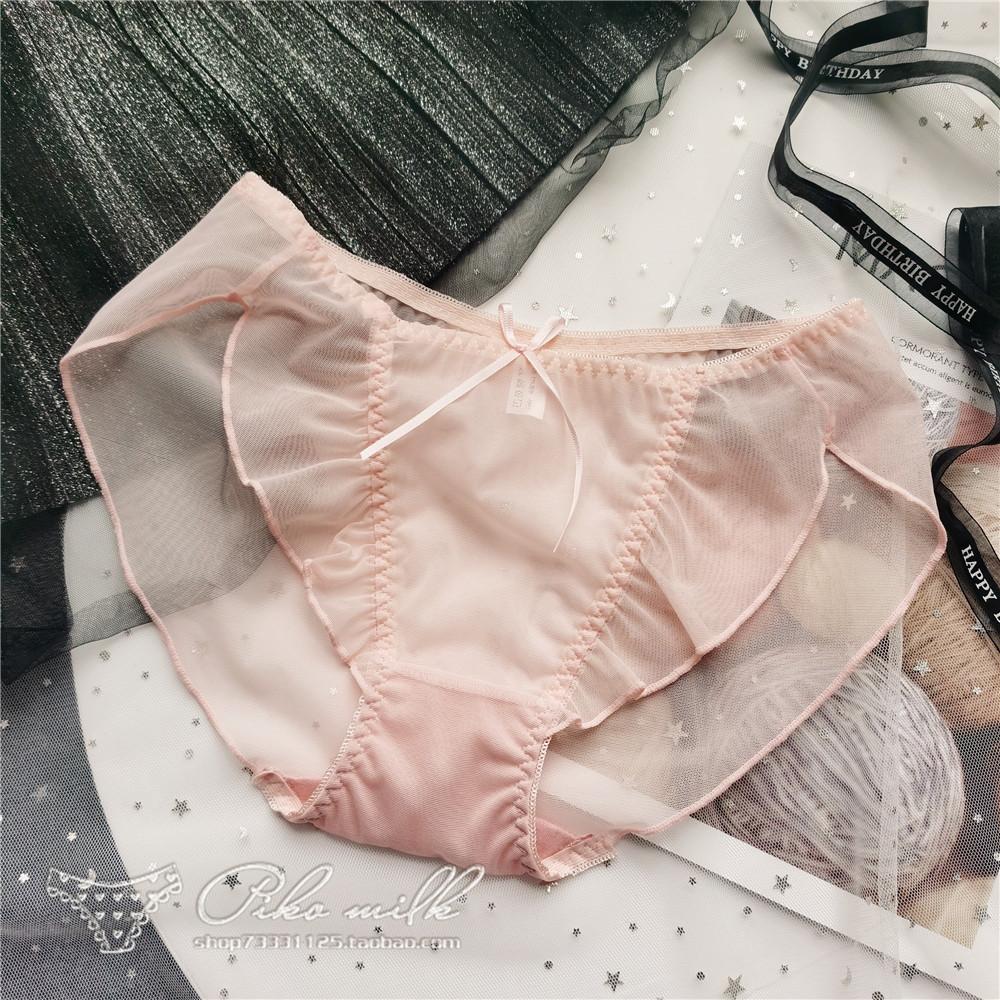 Прозрачные марлевые сексуальные женские трусики с низкой посадкой и милым бантом