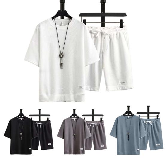 2024Повседневный наряд, модный повседневный наряд длиной до колена на шнурке, футболка с вафельной текстурой, широкие шорты, наряд для отдыха, повседневная одежда — купить товар онлайн с бесплатной доставкой по всему миру!