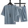 2024Повседневный наряд, модный повседневный наряд длиной до колена на шнурке, футболка с вафельной текстурой, широкие шорты, наряд для отдыха, повседневная одежда