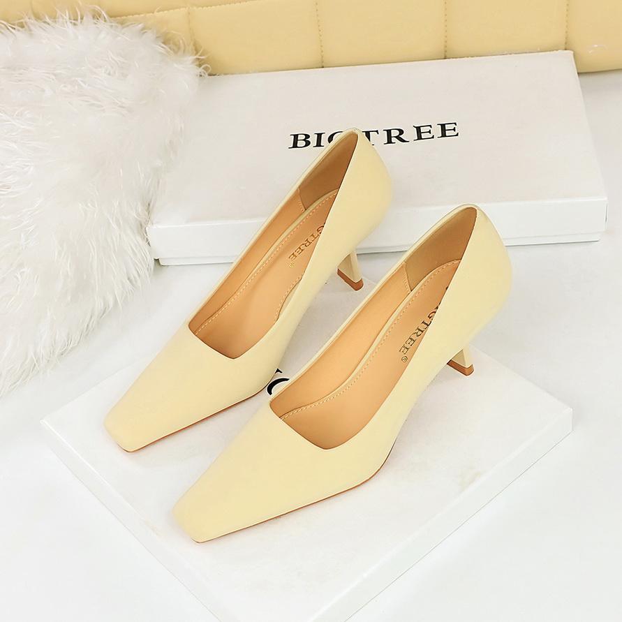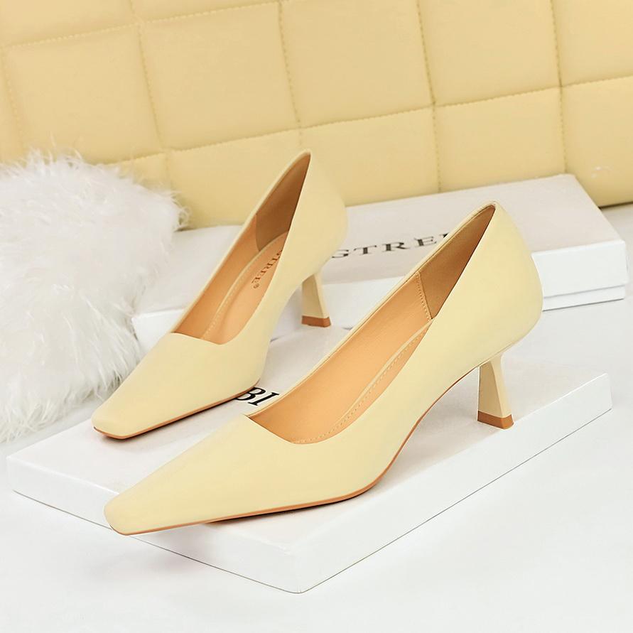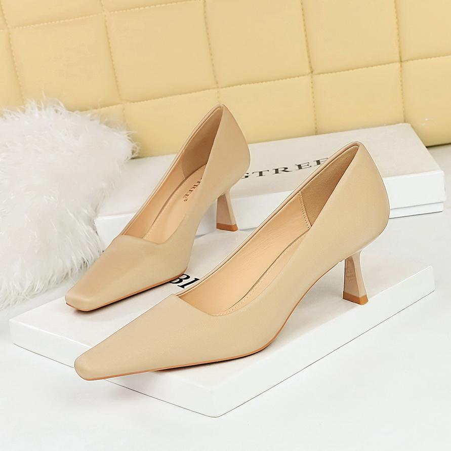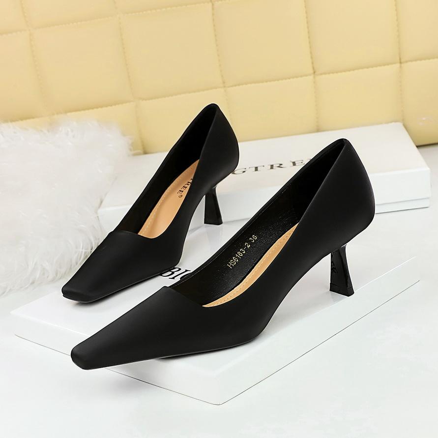 Минималистичные женские профессиональные универсальные туфли на высоком каблуке на тонком каблуке с неглубоким ртом и квадратным носком на одинарном каблуке