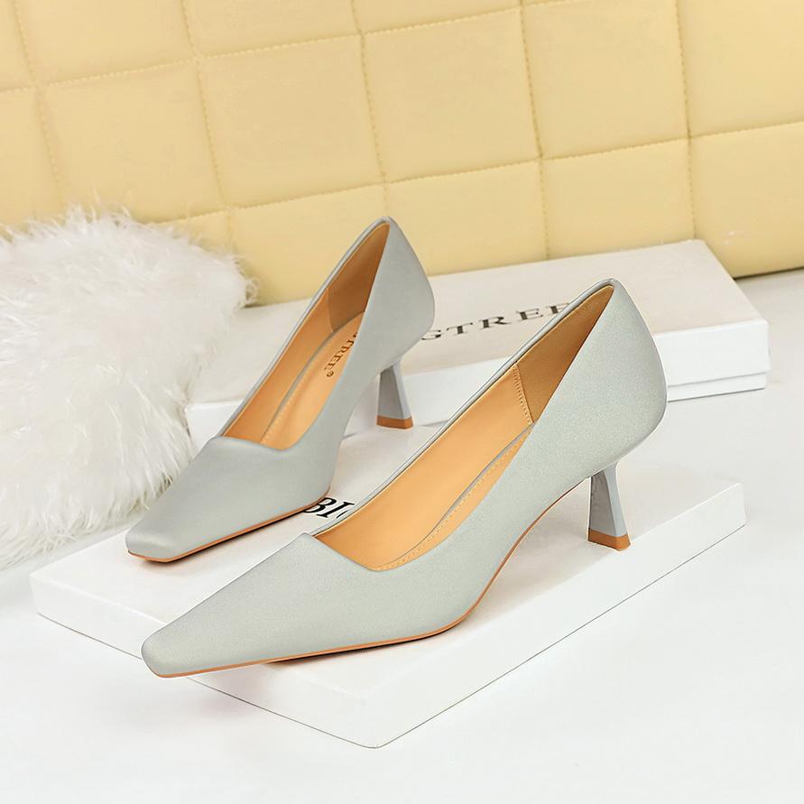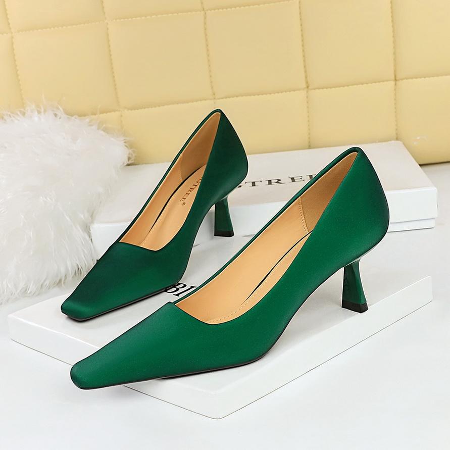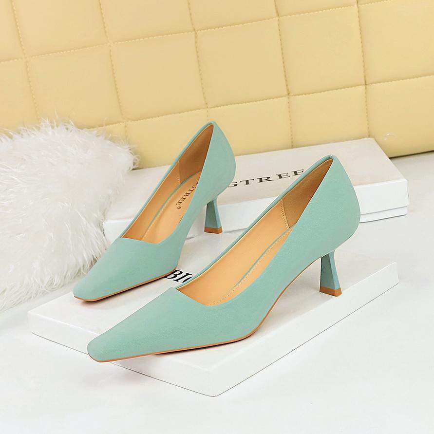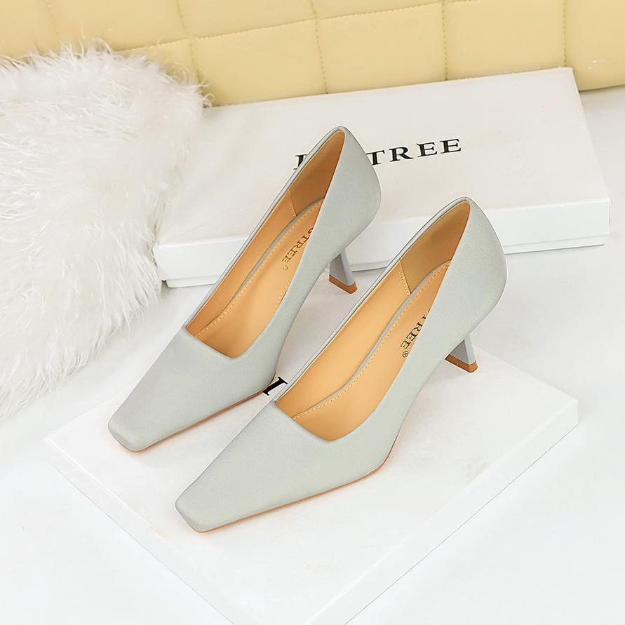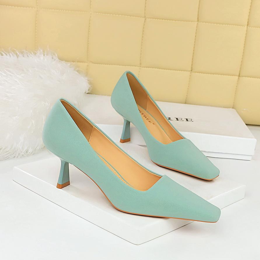 Минималистичные женские профессиональные универсальные туфли на высоком каблуке на тонком каблуке с неглубоким ртом и квадратным носком на одинарном каблуке