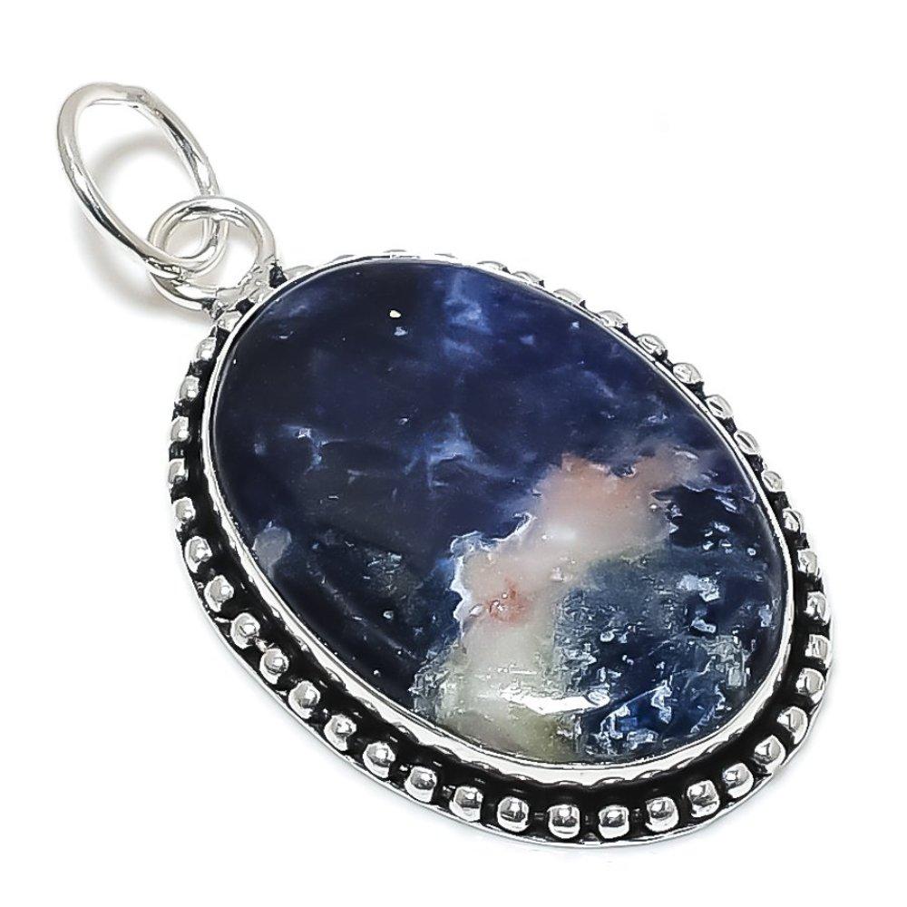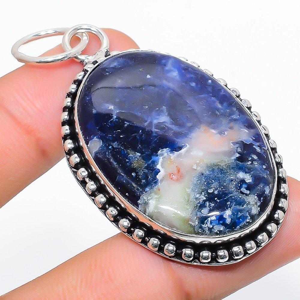 Подвеска ручной работы из стерлингового серебра 925 пробы с натуральным драгоценным камнем содалитом 2,40 дюйма