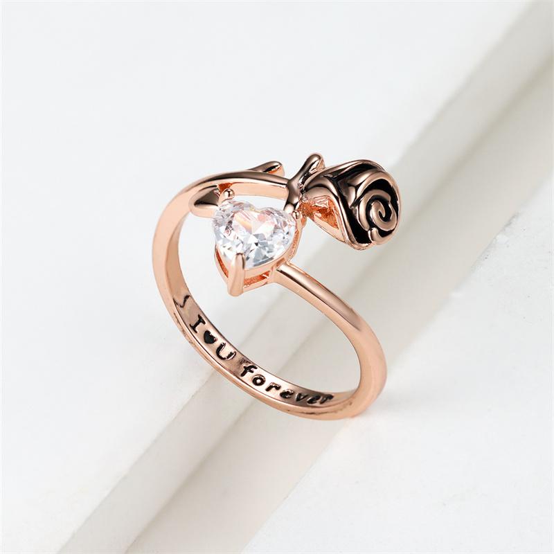 Модное женское розовое золотого цвета, регулируемое кольцо с цветком розы, роскошное кольцо в форме сердца с белым камнем, я люблю тебя навсегда, обручальные кольца, ювелирные изделия