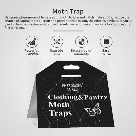 Защитите свой гардероб с помощью нашей профессиональной ловушки для одежды от моли.. Эти ловушки, изготовленные из суперклея промышленного класса, экологически чистые и не имеют запаха, что обеспечивает безопасное использование в вашем доме.
