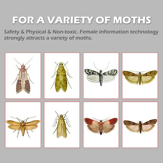 Наши ловушки для моли содержат сверхсильный женский феромон с замедленным высвобождением, который привлекает, ловит и убивает самцов моли, нарушая их репродуктивный цикл.