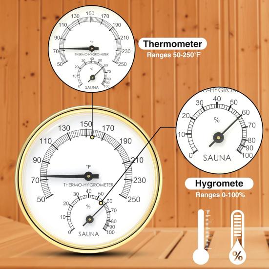 Точность производительности: Этот термометр для сауны, созданный для обеспечения точности, обеспечивает точные показания температуры, позволяя вам настроить посещение сауны для оптимального комфорта и расслабления.