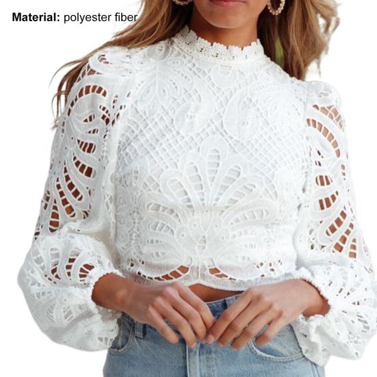 Однозначно, что вы будете сексуальны и модны носить эту кружевную дизайнерскую блузку, которая имеет полые паттерны, она будет прохладной и дышащей летом или весной, длинный рукав фонаря будет красивым и уникальным на вид.