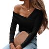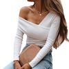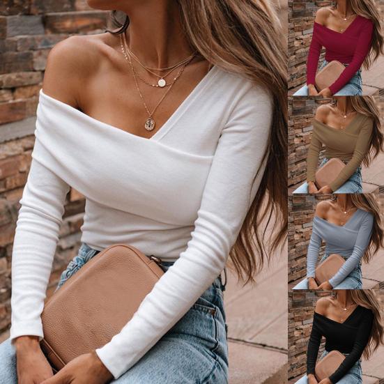 Осенняя блузка с открытыми плечами, однотонная женская тонкая блузка с длинным рукавом, все — купить товар онлайн с бесплатной доставкой до всему миру!