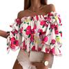 Многослойный топ с открытыми плечами, красочная плиссированная женская рубашка с расклешенными рукавами