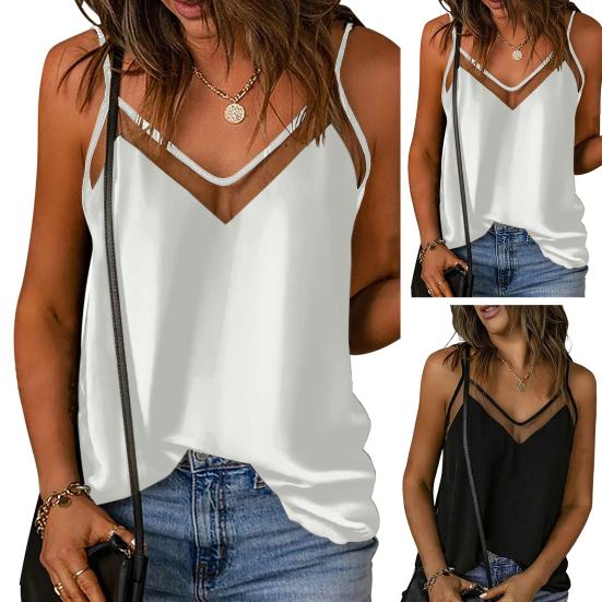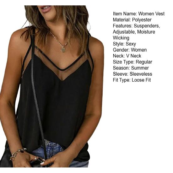Женский жилет, подтяжки с v-образным вырезом, сетчатый ремень для спагетти, без рукавов, регулируемый однотонный