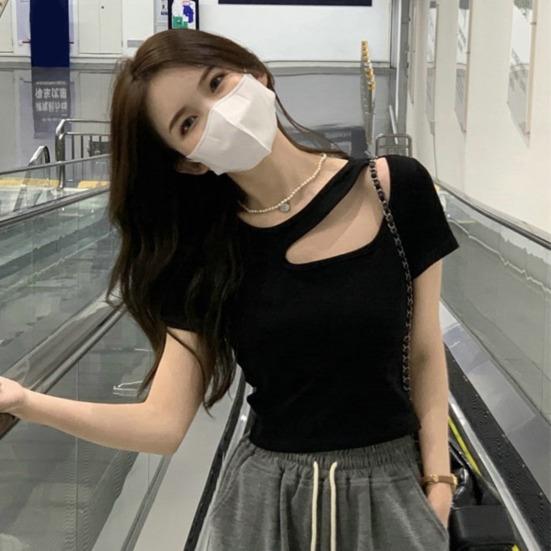 Благодаря U-образному вырезу, сексуальному полому дизайну, укороченной длине и облегающему крою, однотонная футболка легкая и красивая, ее можно носить с симпатичным ожерельем, которое можно носить с джинсами или повседневными брюками. Его можно одевать или носить более небрежно.