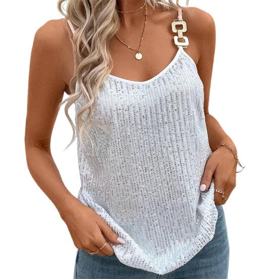 Топ без рукавов с V-образным вырезом, регулируемые бретели, свободный крой, тонкий блестящий — купить товар онлайн с бесплатной доставкой по всему миру!