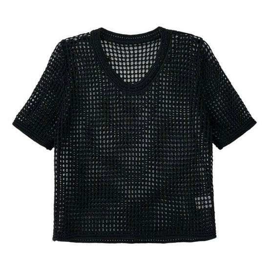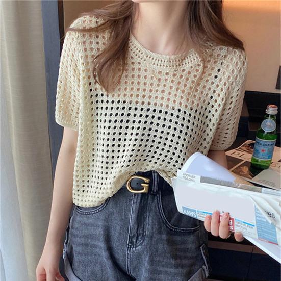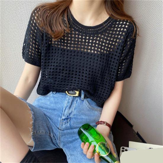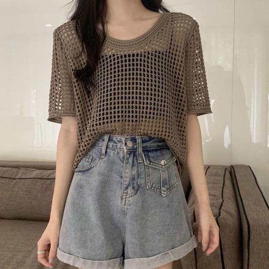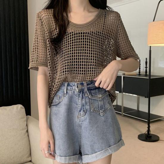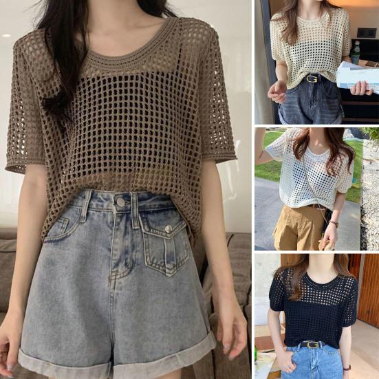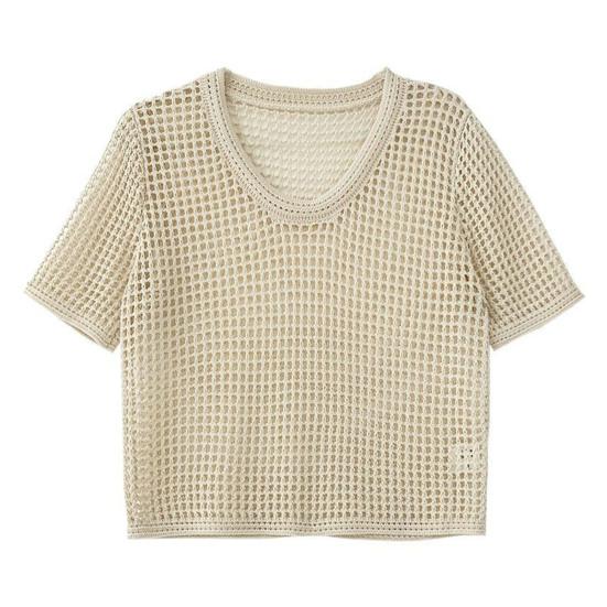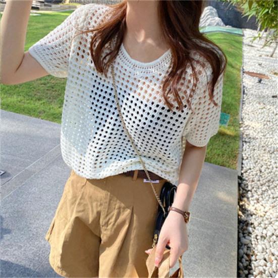 О-образным вырезом с короткими рукавами, сплошной цвет, тонкий солнцезащитный крем, эластичная перспектива